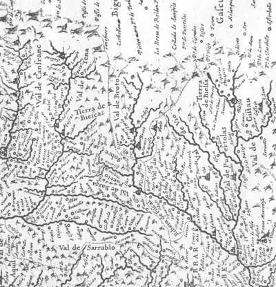densa red de pueblos y caminos en el mapa incluido en