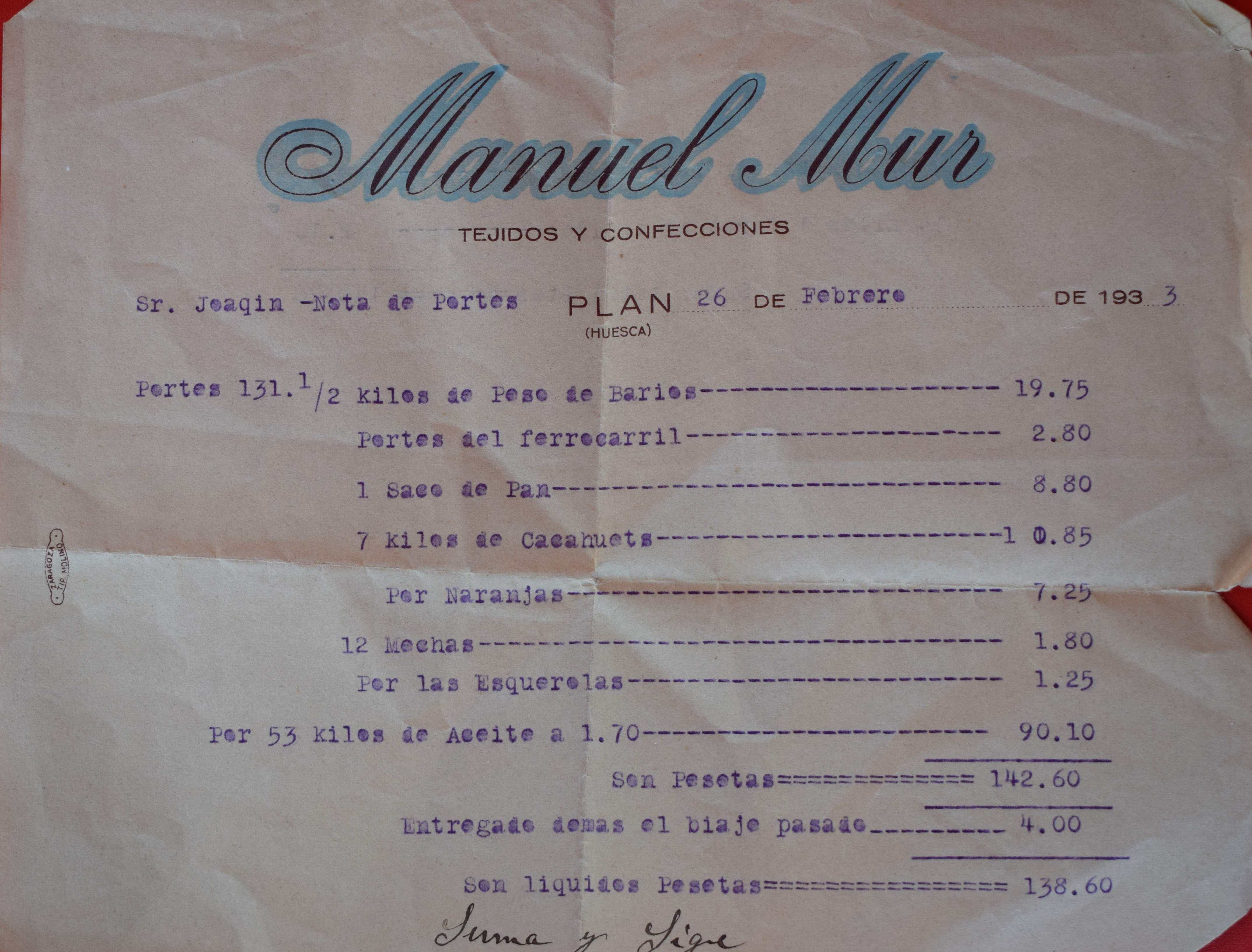 telas, vajilla…) entre Plan y Barbastro, y viceversa.