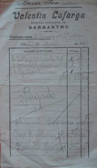 en algunos de los almacenes de Barbastro, como Acín