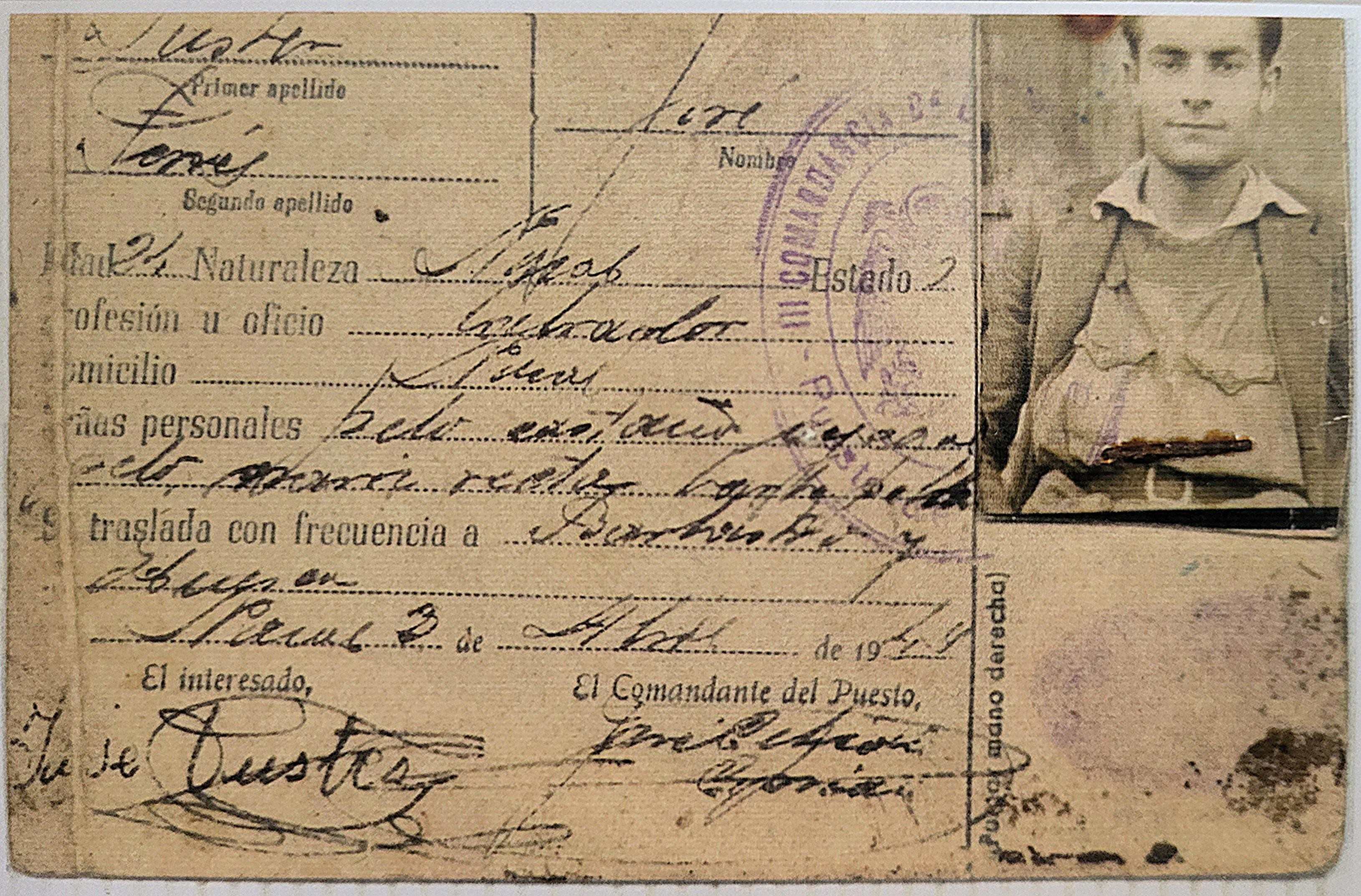 en el cuartel de la Guardia Civil. El carnet de José,