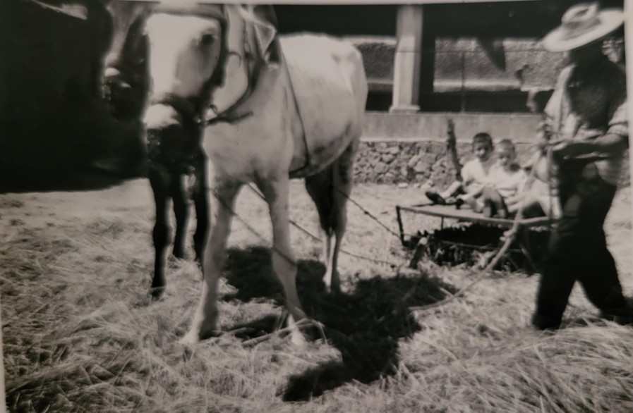 blanco Tordillo trillando en la era del lavadero,